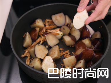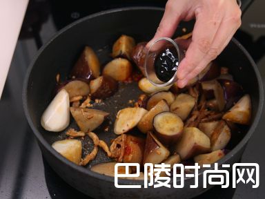 5然后加入茄子炒匀