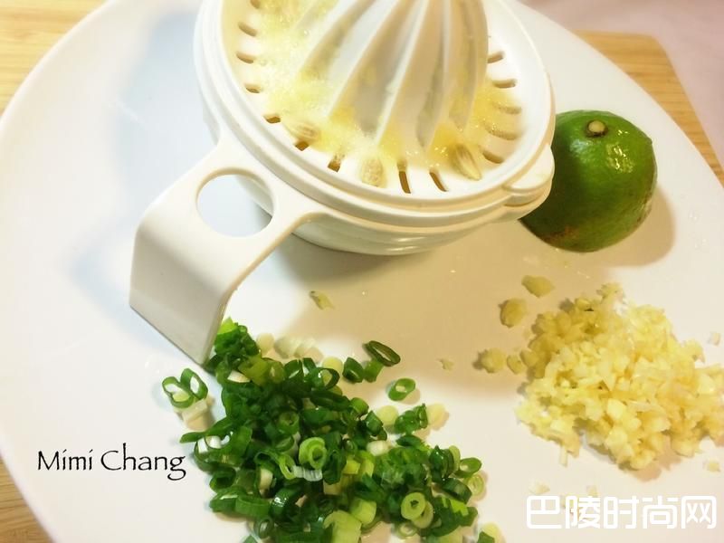 2烤时准备酱汁,柠檬榨汁,葱蒜切末。