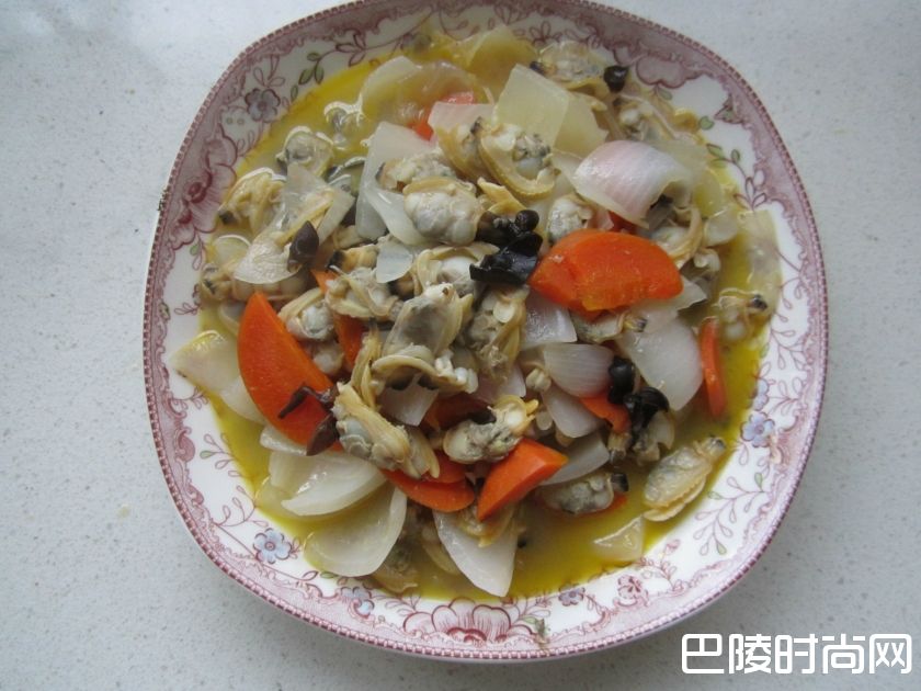 文蛤洋葱文蛤1000克,洋葱1个,油、料酒、盐适量