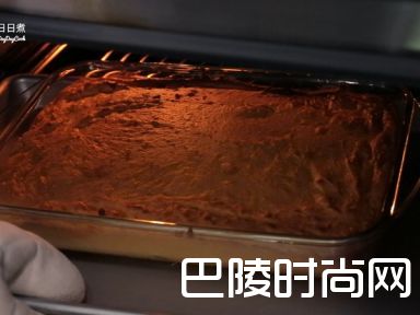 4接着放入淡奶油及酸奶油拌匀,倒入烤盘内,放入烤箱烘烤30分。