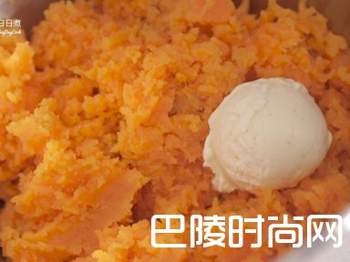 3准备厨师机,放入红薯泥和冰淇淋混合。