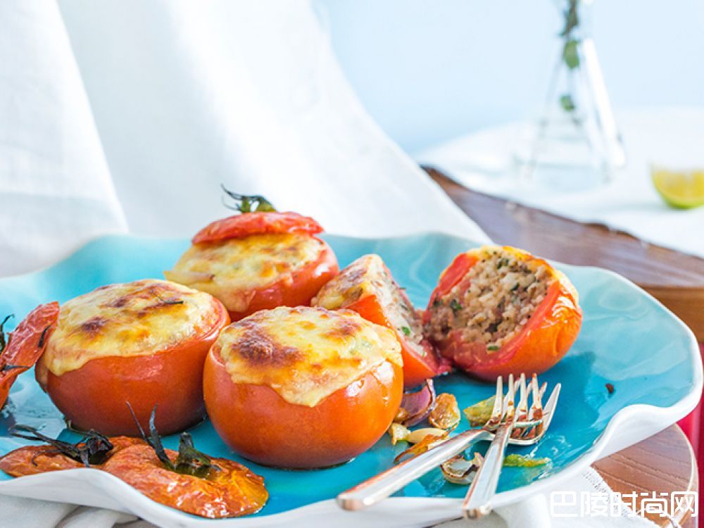 2番茄洗净,切去有根的一边做盖子,挖出心备用。
