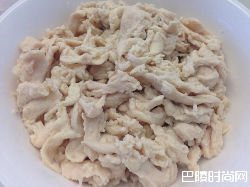 3鸡丝烫一下捞起备用,烫的时候尽量让它散开不要结成团了