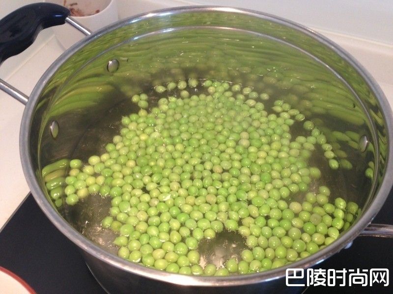 2豌豆仁烫到表面变色之后捞起立刻漂凉,以维持青脆的绿色