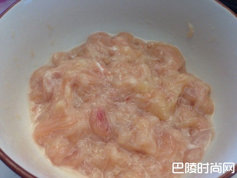 1鸡里肌切成丝,用盐、白胡椒粉、玉米粉或太白粉,加一些水抓醃一下