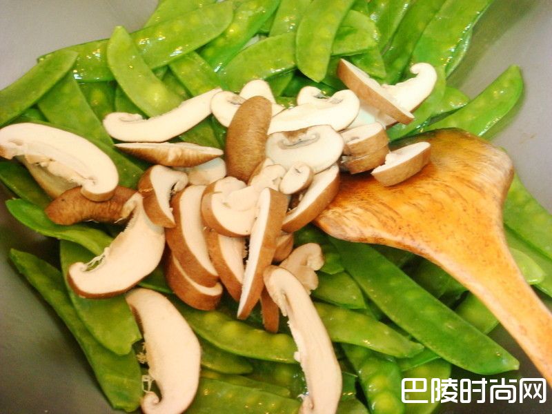 4加入盐与少许酱油增加香气放入香菇一起拌炒,加入20CC水,盖上锅盖闷1分钟即可