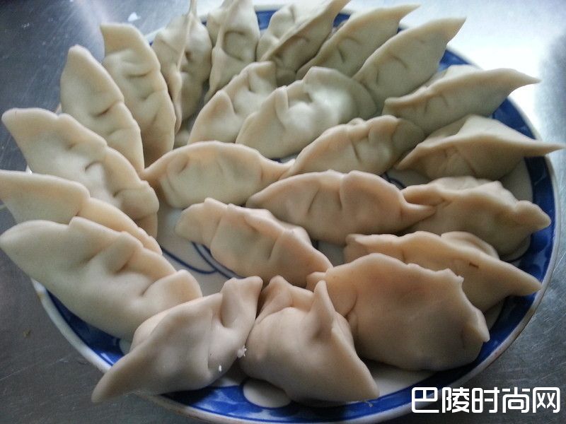 7将内馅放在水饺皮中间后,包起来,即可完成水饺了喔