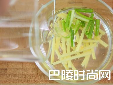 1姜切丝、小葱切段加温水泡十分钟。