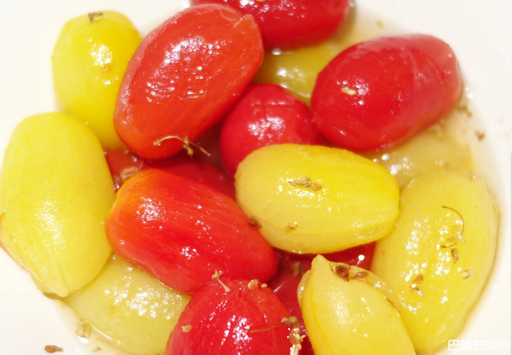 蜜汁圣女果圣女果(200克)、盐(适量)、蜂蜜(适量)、糖桂花(适量)