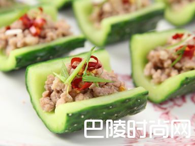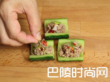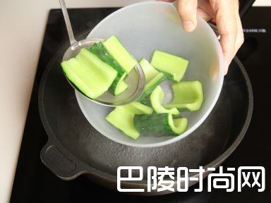 4在沸水中以高火灼烫青瓜,2分钟后捞起放入凉水。降温后沥干