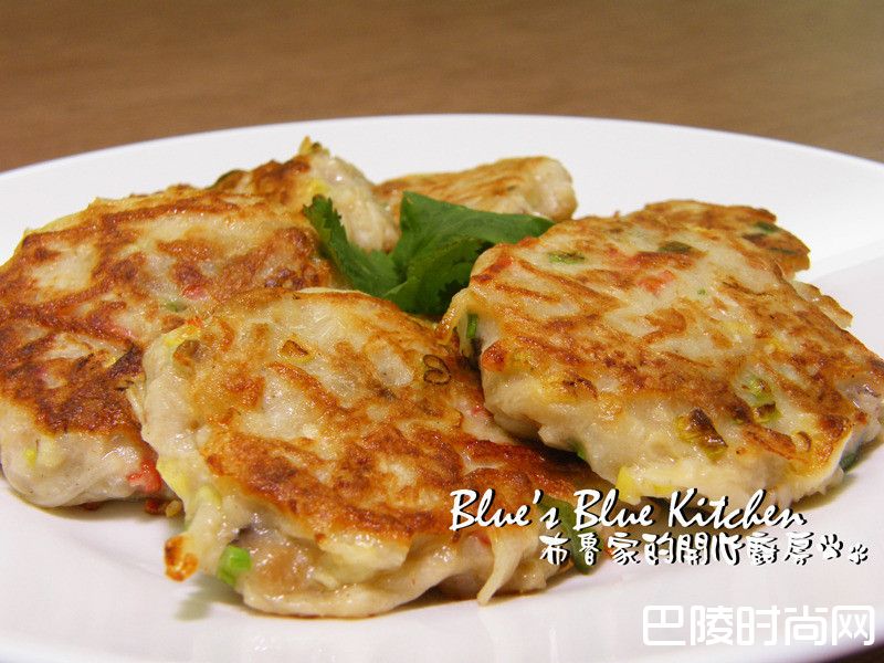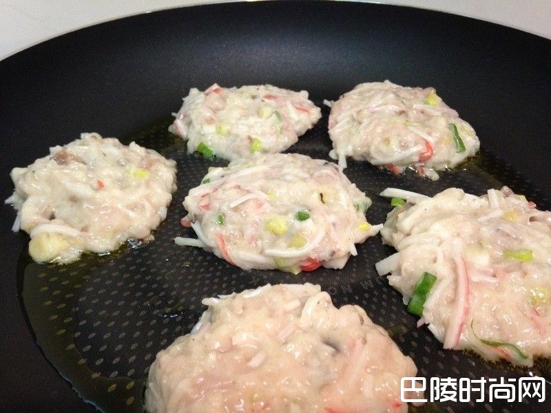 3适量油热平底锅,取出约掌心大小的馅料下锅中小火慢煎。