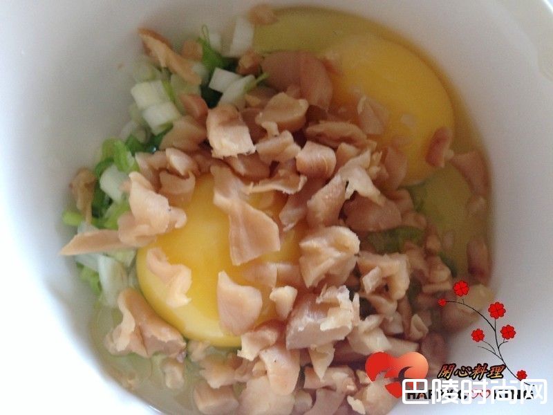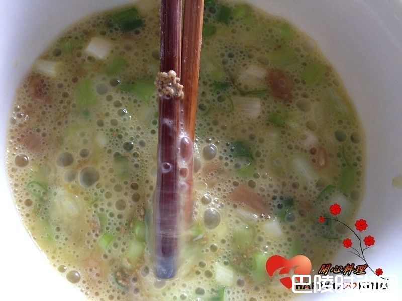 1菜脯净泡一会切成末加入蛋和葱花