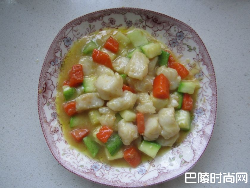 西葫芦鱼丁西葫芦200克,鱼肉200克,胡萝卜等少许,油、盐、胡椒粉、淀粉、鸡精、料酒适量。