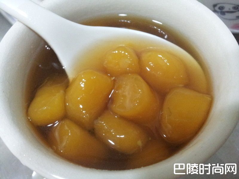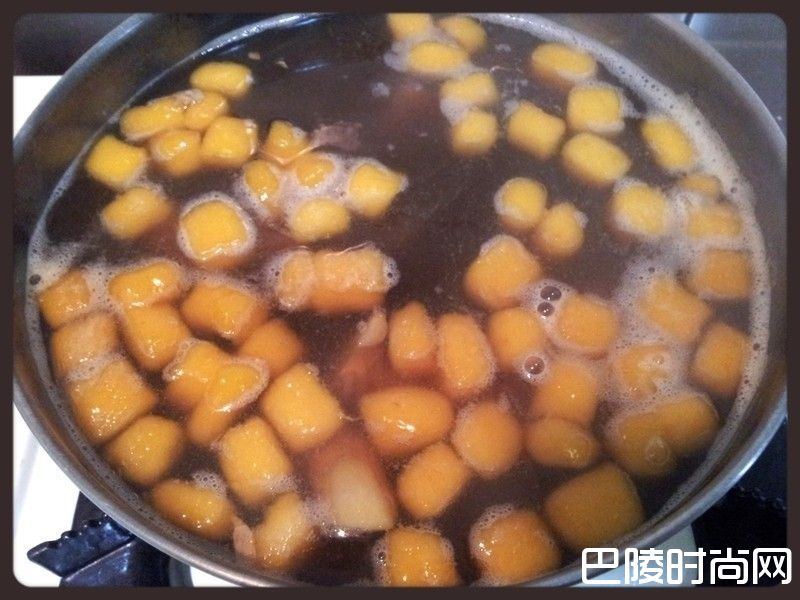 5将地瓜圆放入黑糖姜汁中,等到地瓜圆浮上来就完成囉! (记得地瓜园熟了就可以关火,滚太久会影响QQ的口感)