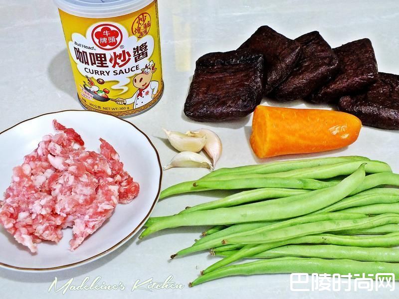 1备齐所有食材~(食谱中选用的豆干是大溪黑豆干,用其他的豆干亦可。)