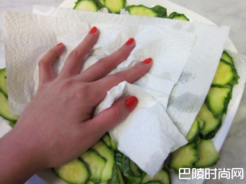 4用厨房纸巾擦去水分, 摊平后放在凉爽的环境中静置30分钟左右, 自然阴干多余的表面水分.