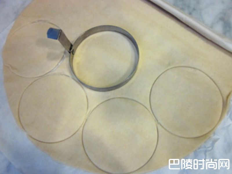 9因为前置作业需要时间比较多, 我不想这么累, 所以用超市买的现成法式派皮. 我用马芬烤盘烤12个小咸派, 利用家里的荷包蛋定型器切割成12块派皮.
