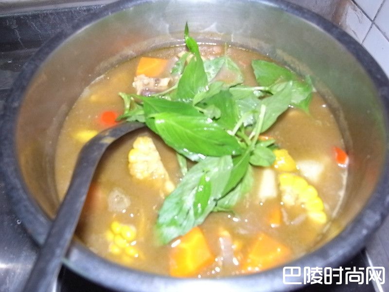 放入锅中一起炖煮~ 加入九层塔 提味~