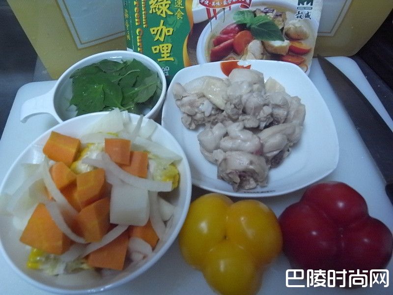 6步骤6 : 彩椒 切块备用~ 九层塔洗净泡水~ 蕃茄也是洗净泡水~