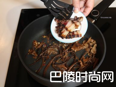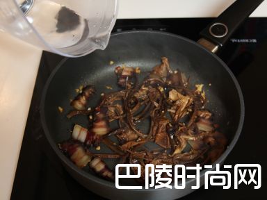 5加入茶树菇和腊肉