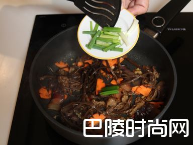 8最后放入红萝卜和葱彻底翻炒