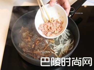 7再将1L水煮滚,加入竹笋,茶树菇和猪肉