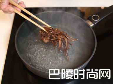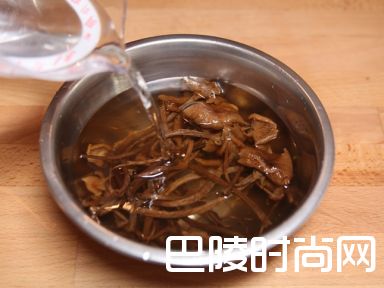 6将竹笋,茶树菇和娃娃菜分别出水1分钟