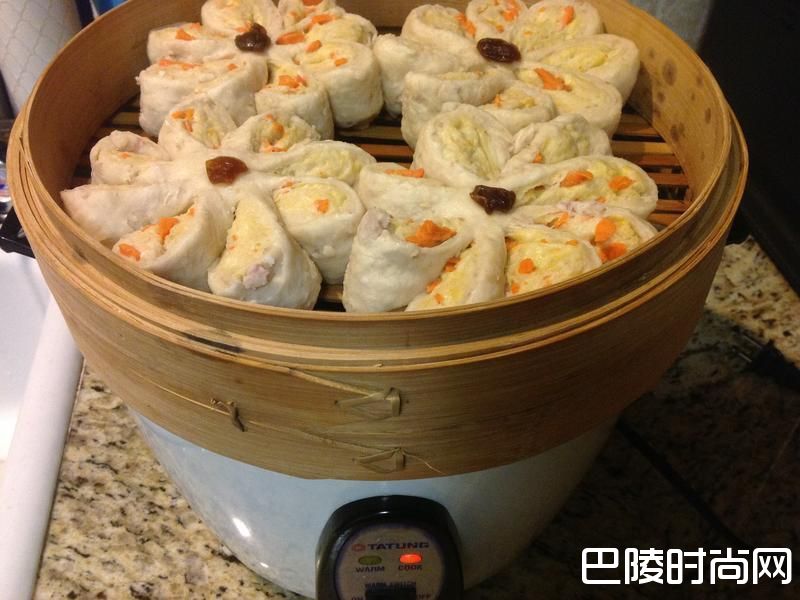 35盖蒸笼盖子,约蒸15分钟后.电锅会自动跳起来,就完成了!