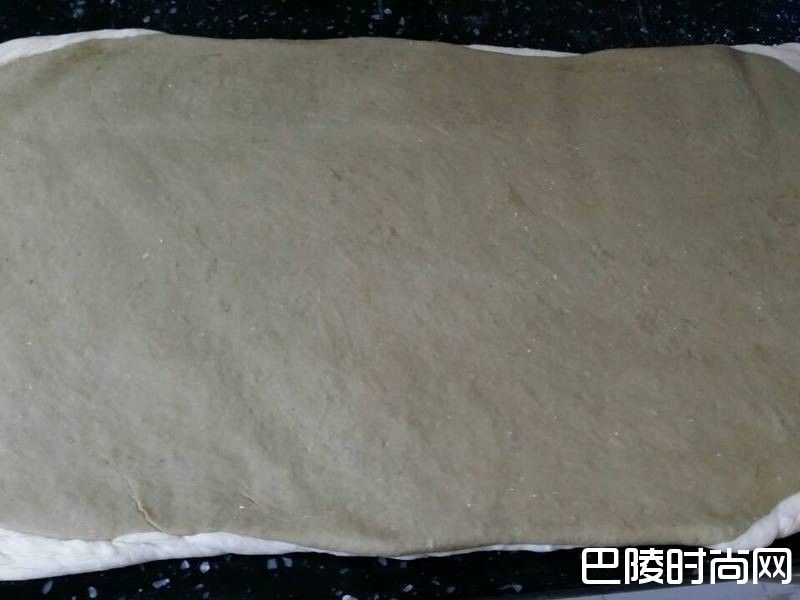 2 绿茶面团:250g中筋面粉+120g水+2.5g酵母+5g油+30g糖+25g绿茶粉将所有材料