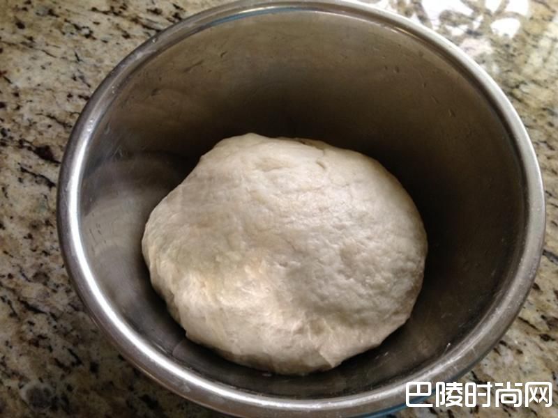 混合均匀,手揉拌成一团,用力揉成均匀光滑又有弹性的圆形面团.滚圆收口朝下.静置3~5分钟