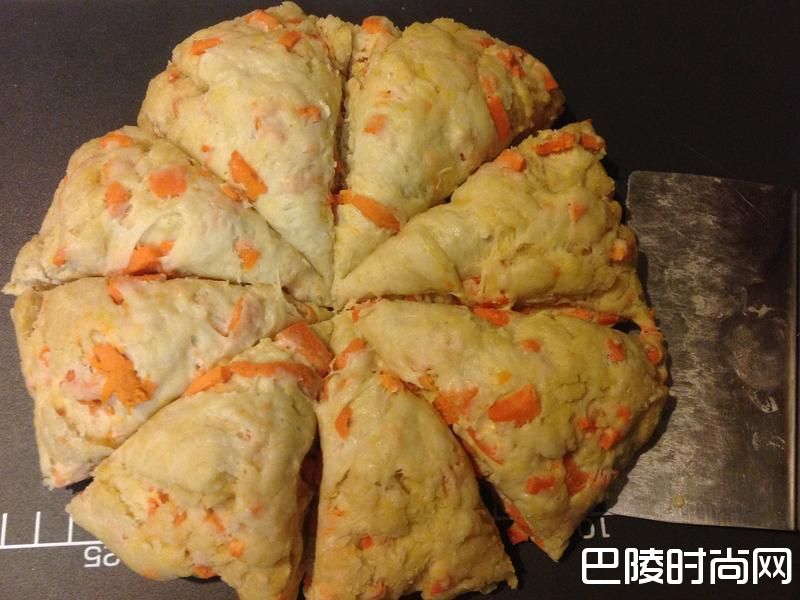 20各将薯地瓜面团,切分成8 等份 (此8份做出来是大份的的;若要给小孩,可再分多等份去做).依个人喜好分成不等的大小皆可