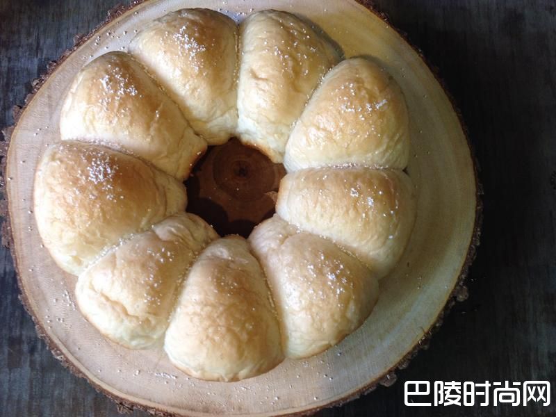 26烤至花圈白面包,表面稍微呈现金黄色就完成了!!