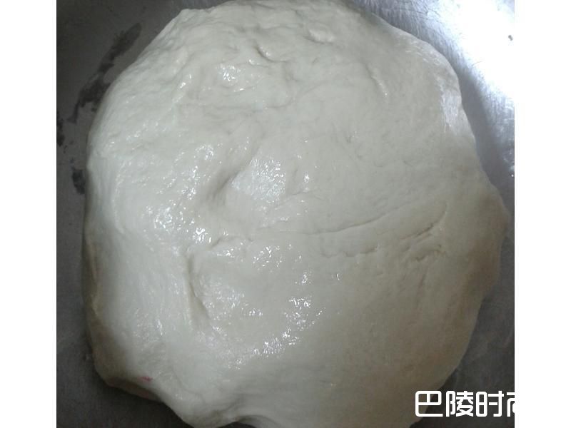 4再大力搓面团约10分钟,面团会变软。将面团放入涂满油的碗内,用保鲜纸封口,让面团发酵一至两小时至面团胀大一倍
