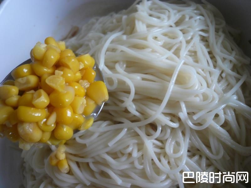 7在锅内加入一匙的玉米粒。
