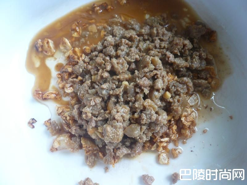 4在蒜油酱和肉燥里加入1匙的盐巴。