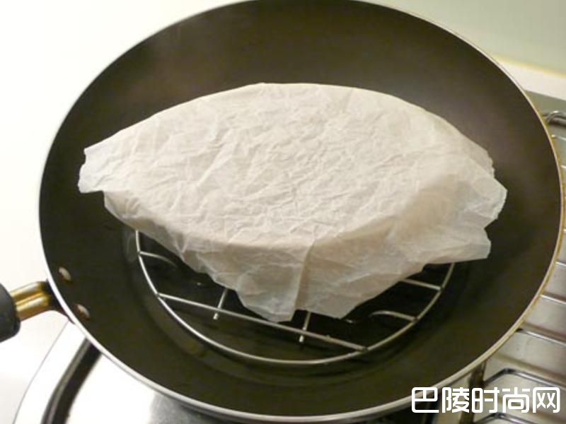 5装盘压扁压平,盖上蜡纸(或锡箔纸)