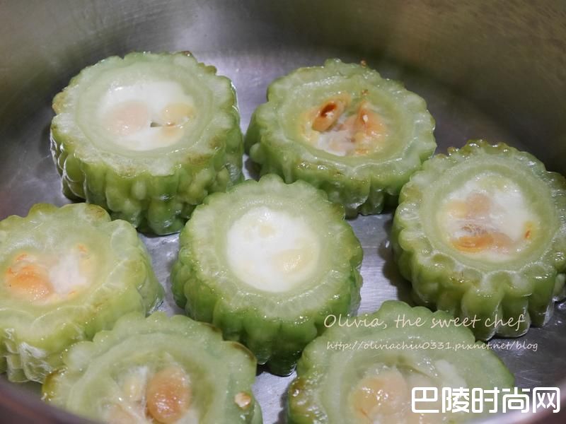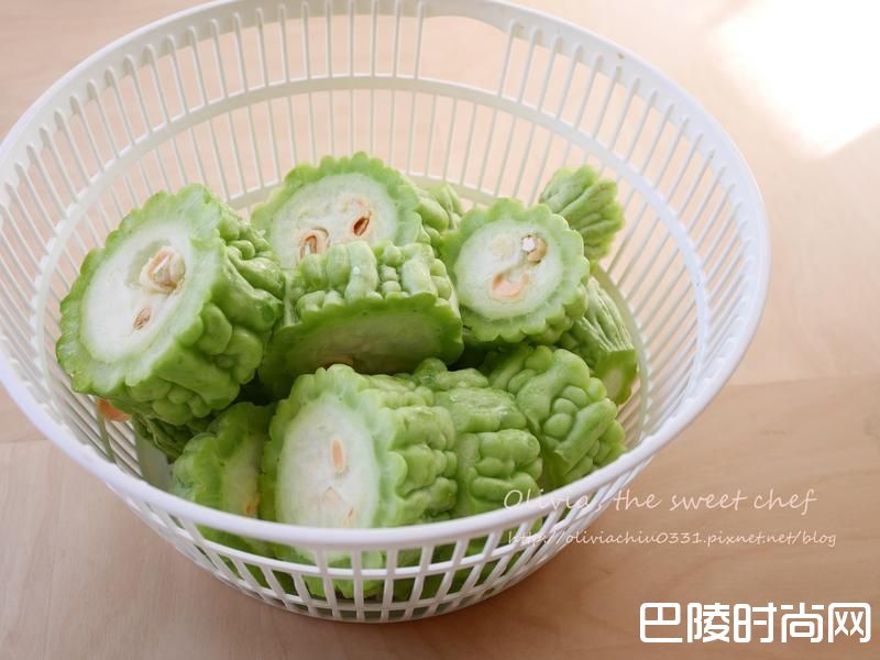 1将苦瓜切成约3公分的宽度。