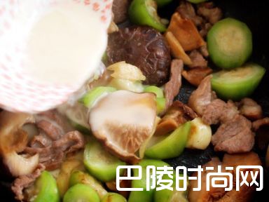 当丝瓜柔化时添加冬菇