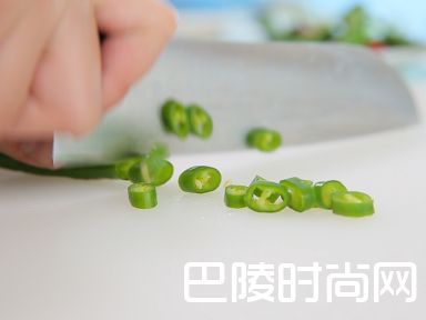 3将青、红尖椒切末