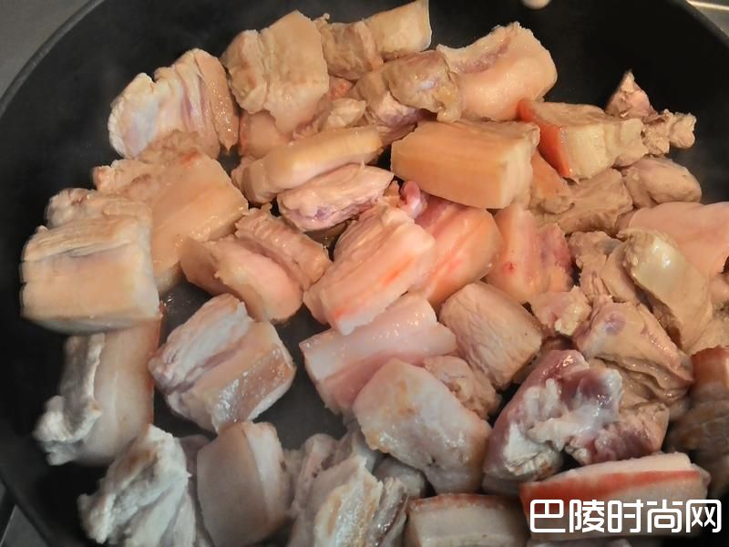 2将五花肉煎至3分熟表面翻白