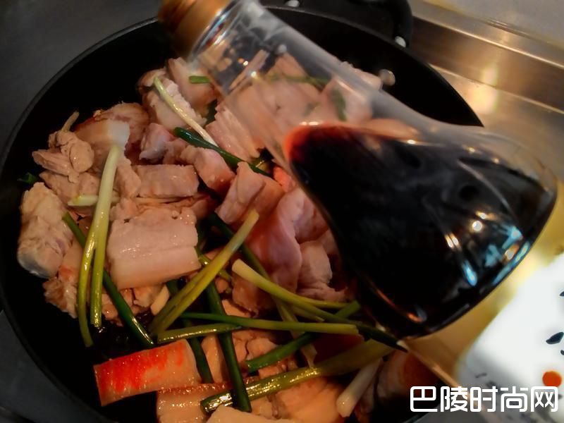 4倒入酱油炝锅再加入所有调味料蒜头~水盖到8分满
