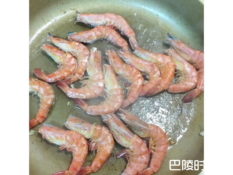 6草虾开背.油适量.煎虾6分熟.不用到全熟.等等还要煮.虾子才不会过老~