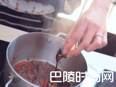 8下一步做麻辣酱。用一个锅,加入油用中火烧热。加入花椒和八角,煮2-3分钟。加入醋,酱油,糖搅拌到糖融化就可以离火。备用。