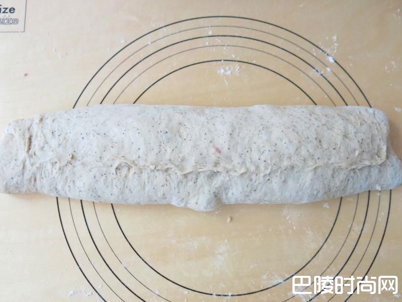 10面团卷起并将收口出捏紧封口。