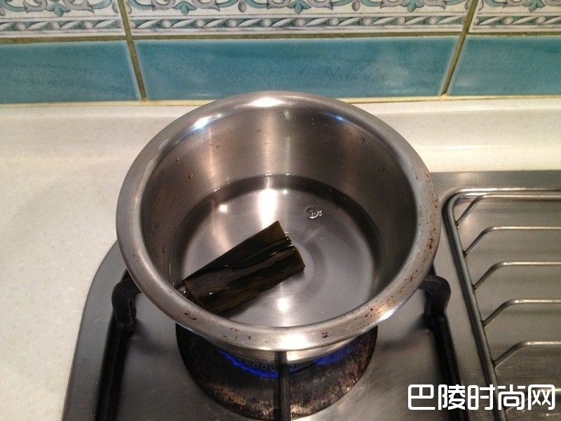 3小汤锅水滚后,放入昆布,煮10~15分钟,关火冷却备用
