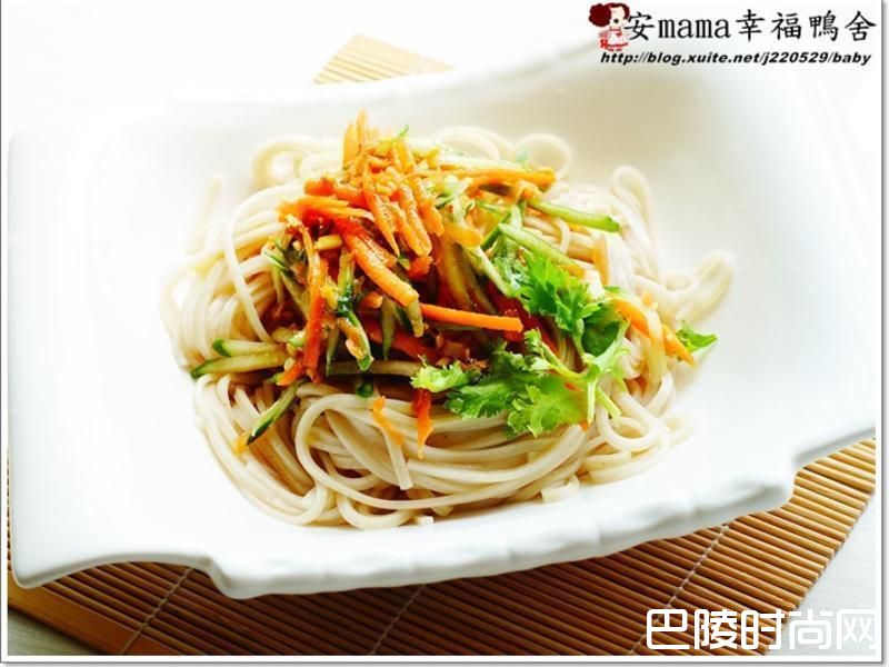 4将荞麦面、蔬菜丝摆盘后,淋上酱汁和香菜食用。
