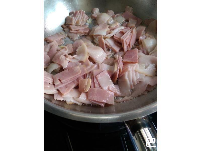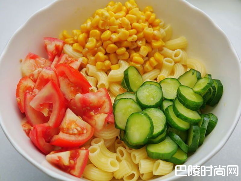起滚水锅,水滚后加入少许盐巴和油,放入通心粉煮熟后捞起沥乾,再加入少许橄榄油(份量外)拌均匀,放凉备用。