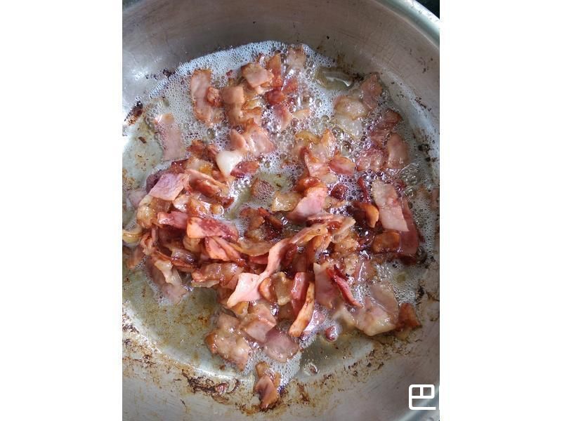 5煎至洋葱软化,盛出与培根一起置放。