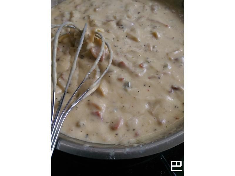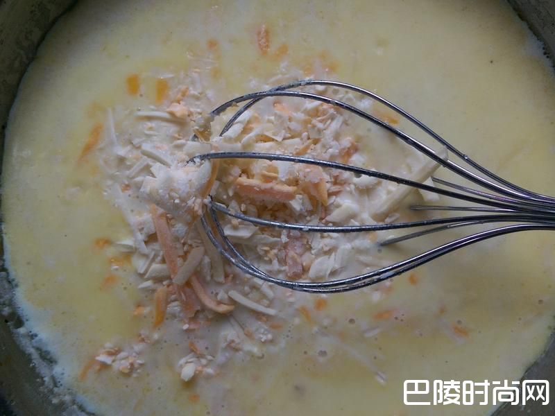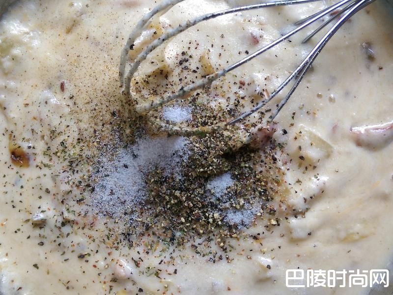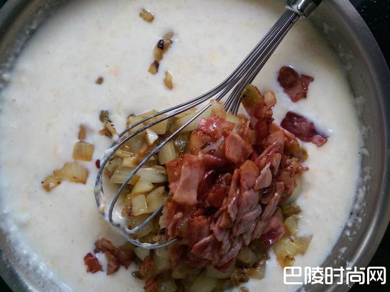 10加入培根及洋葱末搅拌。