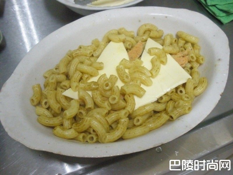3把煮熟的通心粉倒入锅内,轻轻拌炒,让通心粉全部裹上咖哩酱,可加适量盐及味素调味。